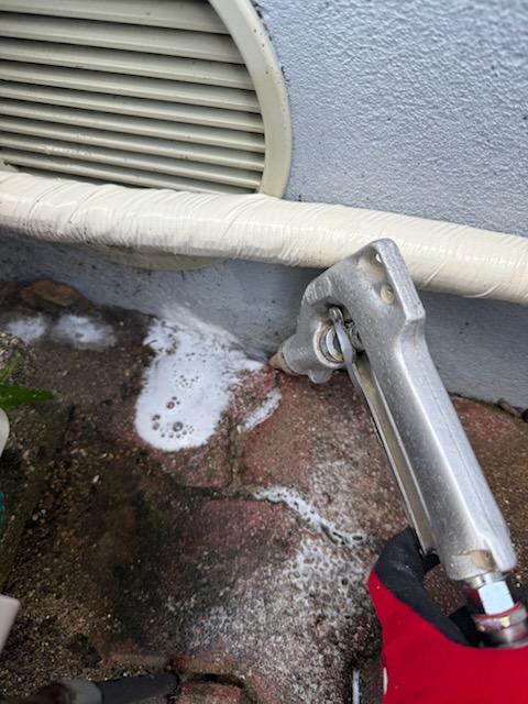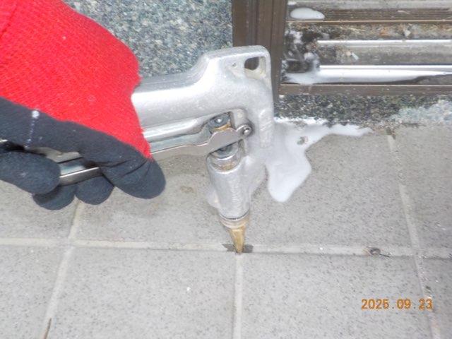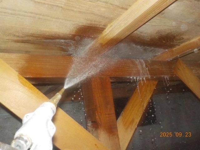 今日は2年前にシロアリ駆除工事をさせて頂き、既存タイルの風呂からユニットバスに交換する際の保証中の再予防工事で、タイルの風呂時に薬剤注入処理をしているので、ユニットバスに交換する際は、薬剤が染み付いている土壌を掘り撤去する為、ユニットバス下の生コンを打つ前に、再度薬剤散布をする必要ある為、本日工事をさせて頂きました🤗