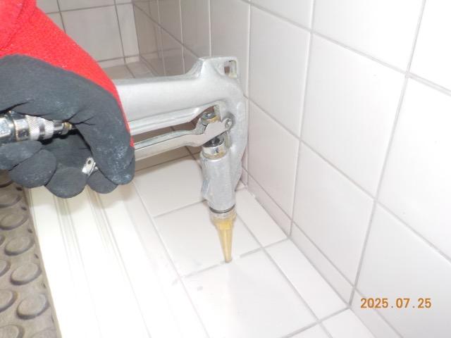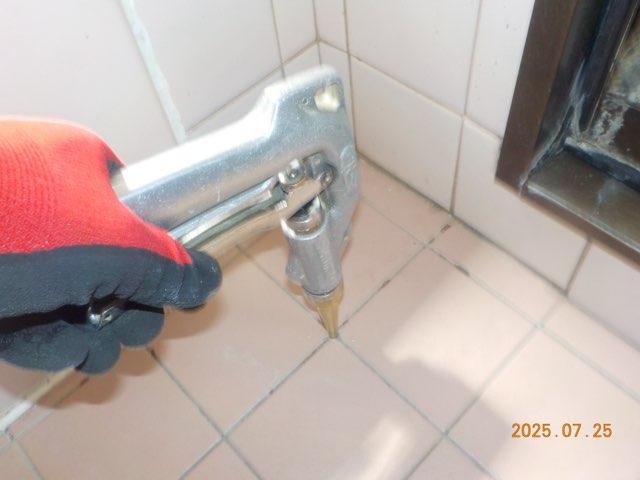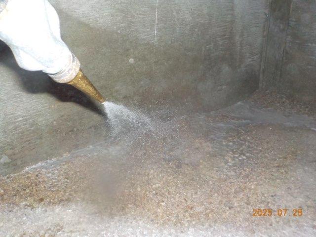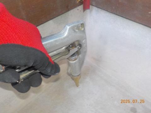 外部の仕事を終わらせて、床下に入れば涼しいんですが、何と❗️薬剤がお湯になってます😭😭