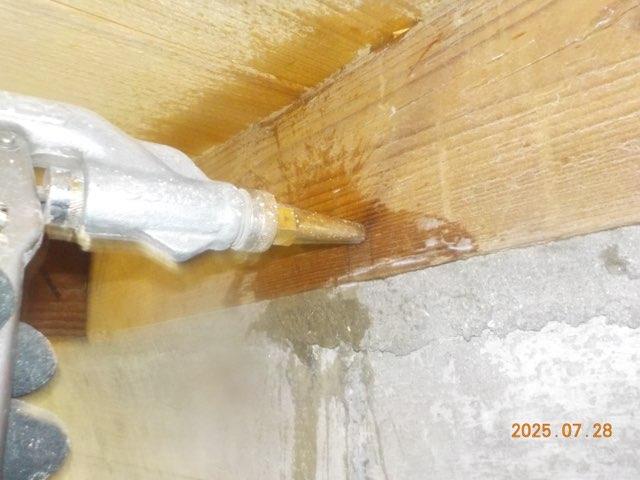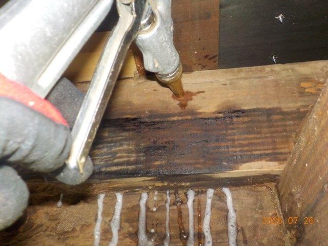 被害部穿孔後、薬剤注入処理、専用木栓して、再度薬剤散布で完了です👍