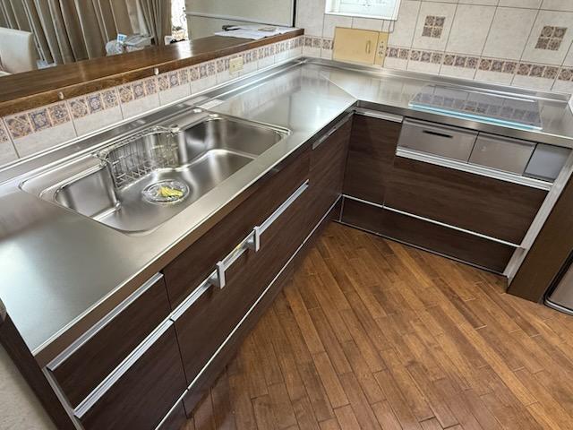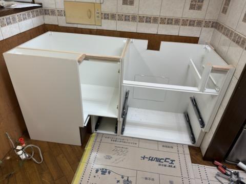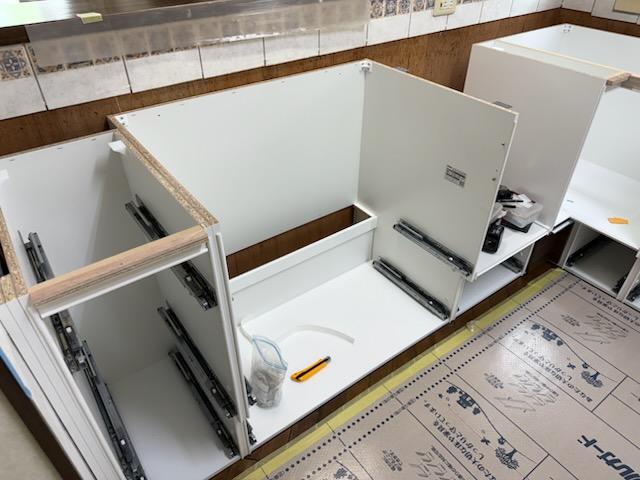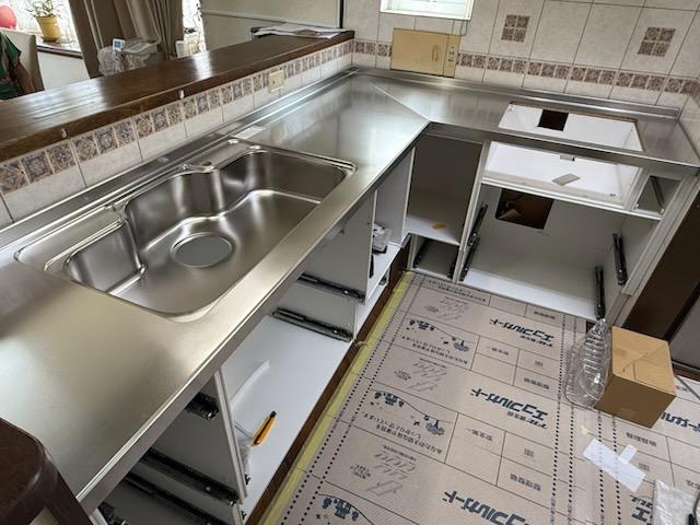 宇部市N様邸にて、システムキッチン、レンジフードの取り替え工事をさせて頂いております🤗