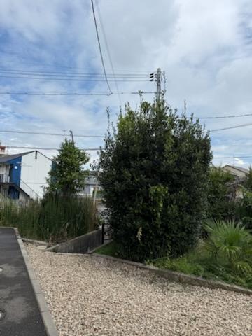 アパート敷地駐車場内の立木の中にスズメバチが巣を作っていました。