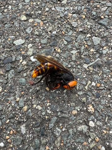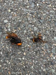 まずは立木の伐採からスタートし、1つ目の巣を駆除撤去し、もう1つを探すものの無くて、蜂が飛び回わってる事もなく、駆除したスズメバチを別のスズメバチが襲いに来ていた為2種類飛んでいた事が判明しました😂