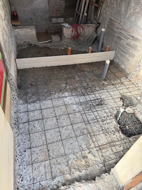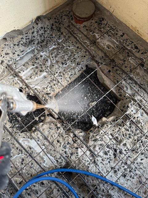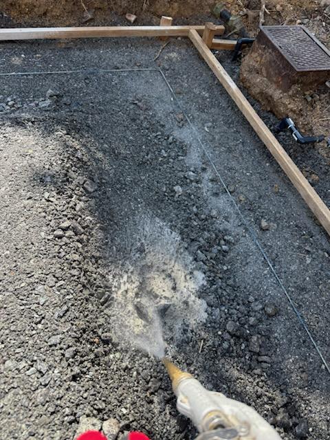 今日は2年前にシロアリ駆除工事をさせて頂き、既存タイルの風呂からユニットバスに交換する際の保証中の再予防工事で、タイルの風呂時に薬剤注入処理をしているので、ユニットバスに交換する際は、薬剤が染み付いている土壌を掘り撤去する為、ユニットバス下の生コンを打つ前に、再度薬剤散布をする必要ある為、本日工事をさせて頂きました🤗
