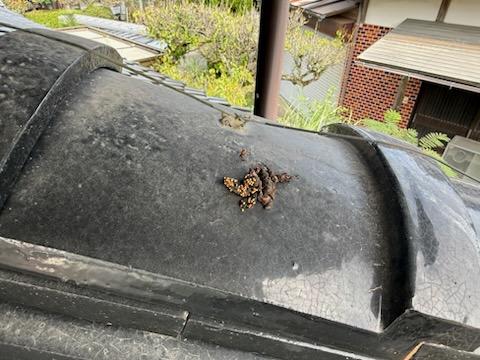 本日お客様お留守の為、外部のみの調査でしたが、屋根瓦の上には、イタチの足跡、糞が多数ありました😭