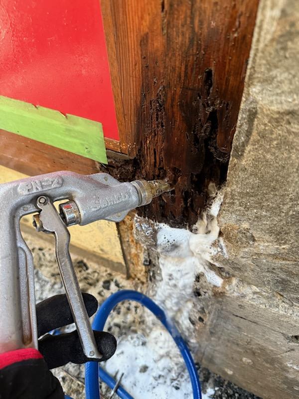 さらに3工程目柱、間柱、筋交の木部薬剤散布となります🤗